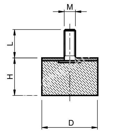 Виброизолятор 1P1M4 50x30 55 Shore A Тип D, резинометаллический цилиндрический с одной резьбовой шпилькой. Данный буфер применяется для гашения толчков и снижения амортизационного хода движущихся масс. Применяется в станках, холодильном оборудовании.Характеристики