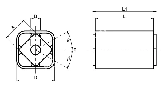 Упругий элемент VIB Type AR-F 70 х 120 . Внешний корпус выполнен из стали, а внутренний квадрат- из алюминиевого профиля из легкого сплава. Надежное соединение получается из-за сил трения между отверстием и проходным болтом (пример A). Это решение позволяет быстро соединить рычаг в нужном положении на 360°. Для высоких нагрузок с поворотом более ± 10 °, изделие может быть изготовлено со шпоночным пазом (пример b).Внешний квадратный корпус может быть зафиксирован с помощью зажима SR.Характеристики