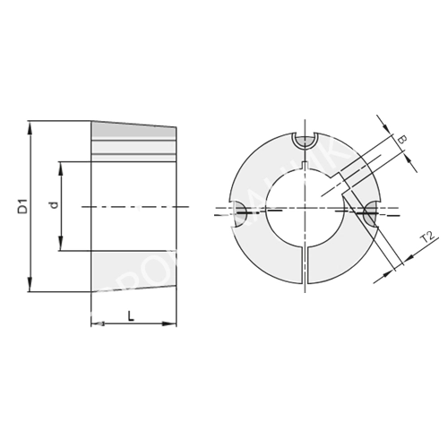 Втулка тапербуш 2517,d=32 мм, EMT с диаметром отверстия 32 мм, изготавливаются из высокопрочного чугуна. Данные изделия упрощают монтаж и демонтаж шкивов, звезд, муфт на валу. Наружная часть конусная. В изделии присутствует отверстие и шпоночный паз согласно DIN 6885/ BS 4235, с наружи покрыты антикоррозионным покрытием, комплектуется винтамХарактеристики