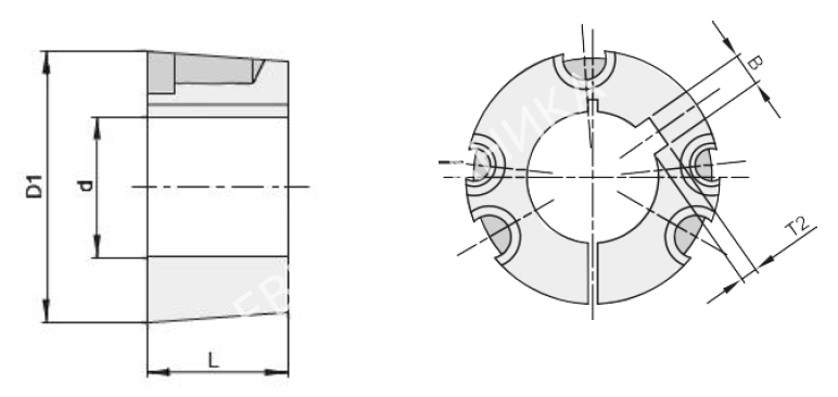 Втулка тапербуш 4535,d=60 мм, EMT с диаметром отверстия 60 мм, изготавливаются из высокопрочного чугуна. Данные изделия упрощают монтаж и демонтаж шкивов, звезд, муфт на валу. Наружная часть конусная. В изделии присутствует отверстие и шпоночный паз согласно DIN 6885/ BS 4235, с наружи покрыты антикоррозионным покрытием, комплектуется винтамХарактеристики